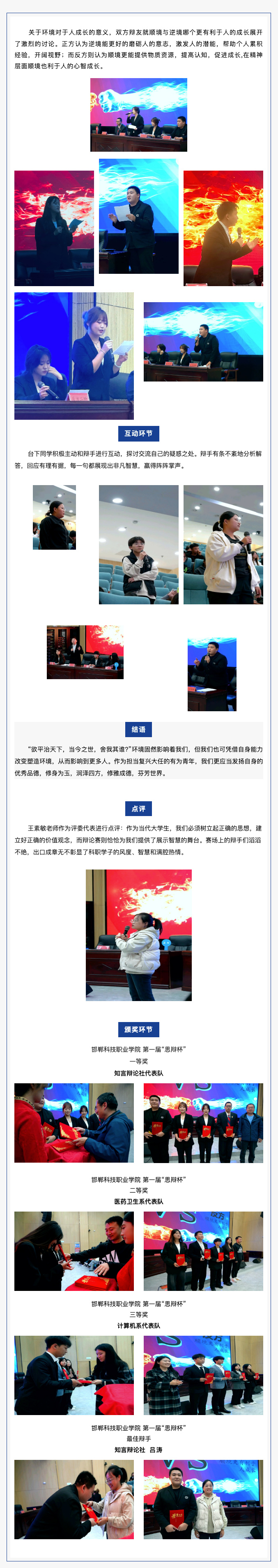 以辩促学锲而不舍,方能胜人胜己;以辩会友博采众长,终可成长成才。近日,邯郸科技职业学院第一届“思辩杯”决赛在国际交流中心一楼报告厅圆满举行。