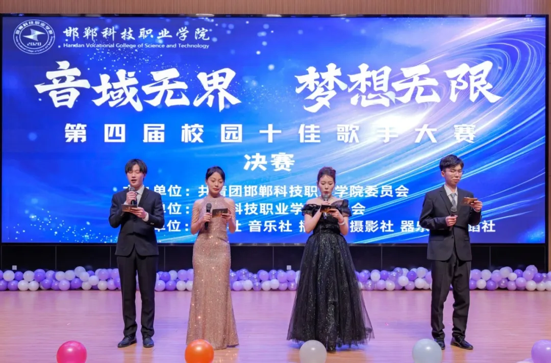 初冬的歌声悠扬,青春的乐章奏响。近日,由院团委主办,院学生会承办,舞蹈社、音乐社、摄影社、礼仪社、播音社协办的邯郸科技职业学院第四届“校园十佳歌手”大赛决赛在国际交流中心二楼报告厅圆满举行。
