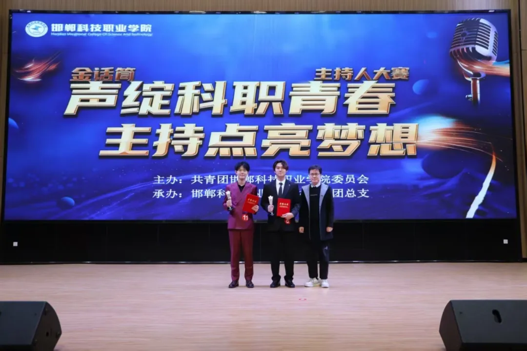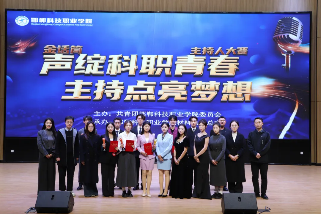2025年11月13日,邯郸科技职业学院国际交流中心二楼报告厅内星光熠熠、掌声雷动,第二届“金话筒”校园主持人大赛决赛圆满收官!