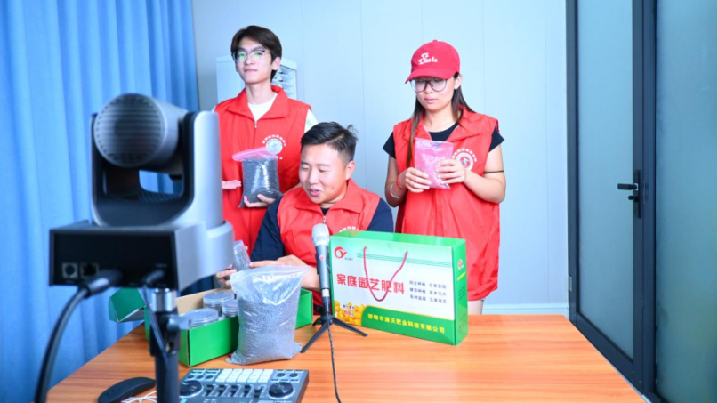 直播环节中,团队迅速进入状态,分工协作默契十足。同学们各司其职:手持不同品类肥料,面向镜头细致讲解产品功效、适用作物及正确使用方法,用通俗易懂的语言打破专业壁垒;专注于弹幕互动,及时解答观众关于施肥周期、用量配比等疑问,巧妙调动直播间氛围。老师们则在旁实时指导,从话术优化到节奏把控提供专业支持,全力保障直播顺利推进。