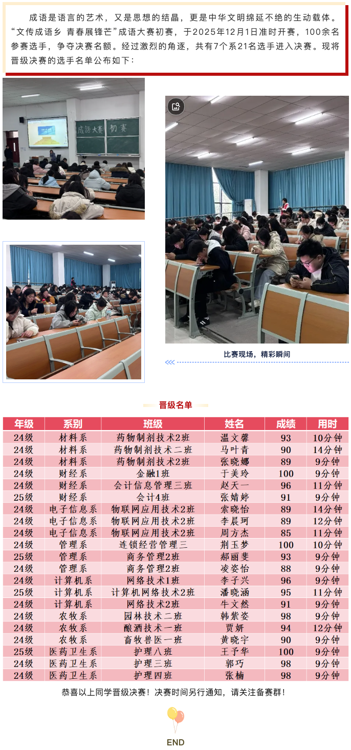决赛见!—— “文传成语乡 青春展锋芒”决赛晋级名单出炉!